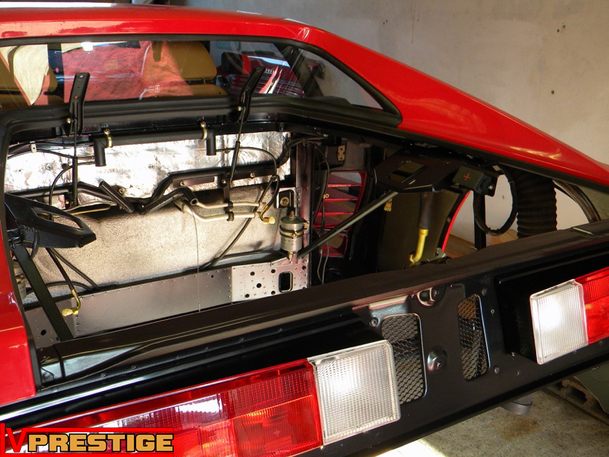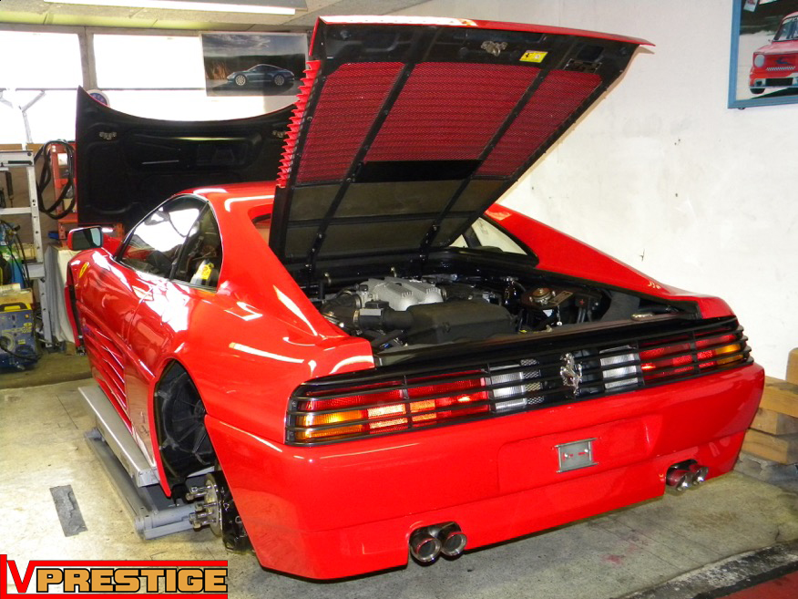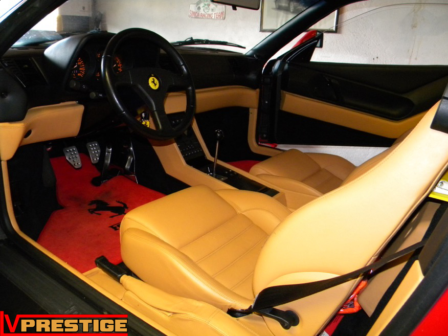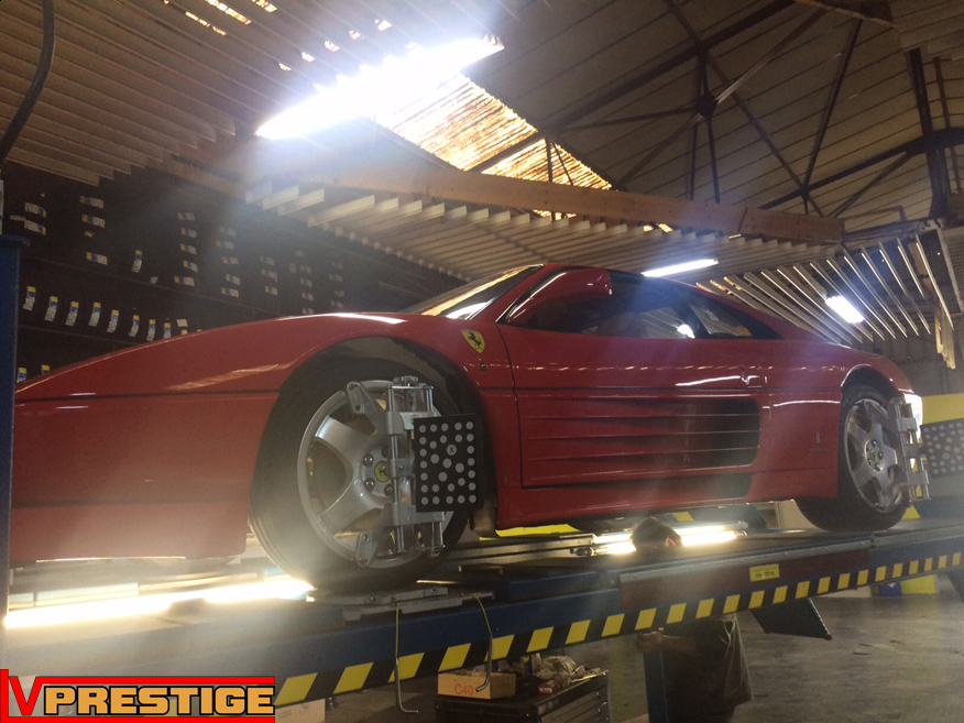 Ce qui devait être une simple révision s'est transformé en un restauration digne de la Ferrari 348 GTB. En très bon état général, la belle portait le poids des années sous sa robe. Au programme, nettoyage et lustrage complet de la carrosserie, nettoyage du bloc moteur et des trains, remplacement des pièces d'usures, refection du compartiment moteur et nettoyage de l'habitacle.
